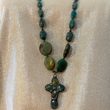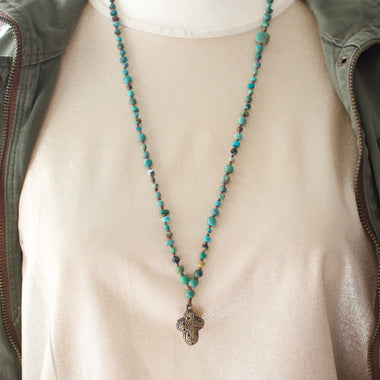 Turquoise Stone and Cross Necklace