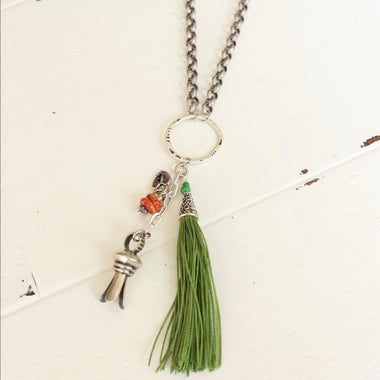 Boho style green tassel necklace - 30”