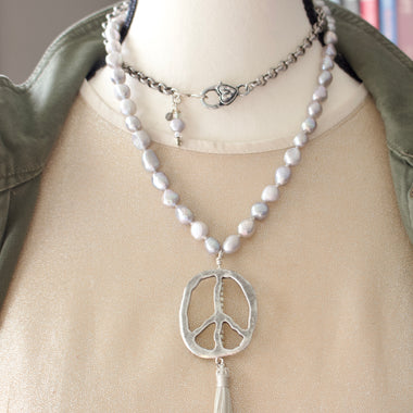 Silver Peace and Tassel Necklace